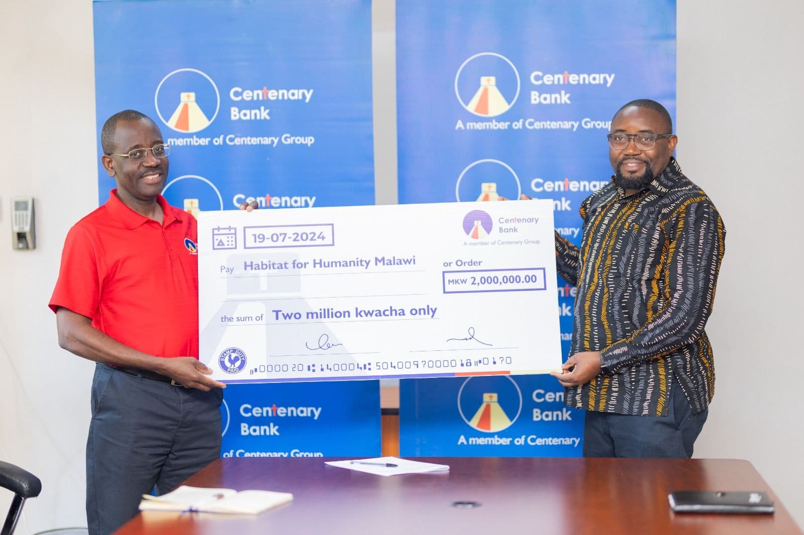 Centenary Bank Donates 2 Million Kwacha to Habitat for Humanity to Aid Cyclone Freddy Victims
